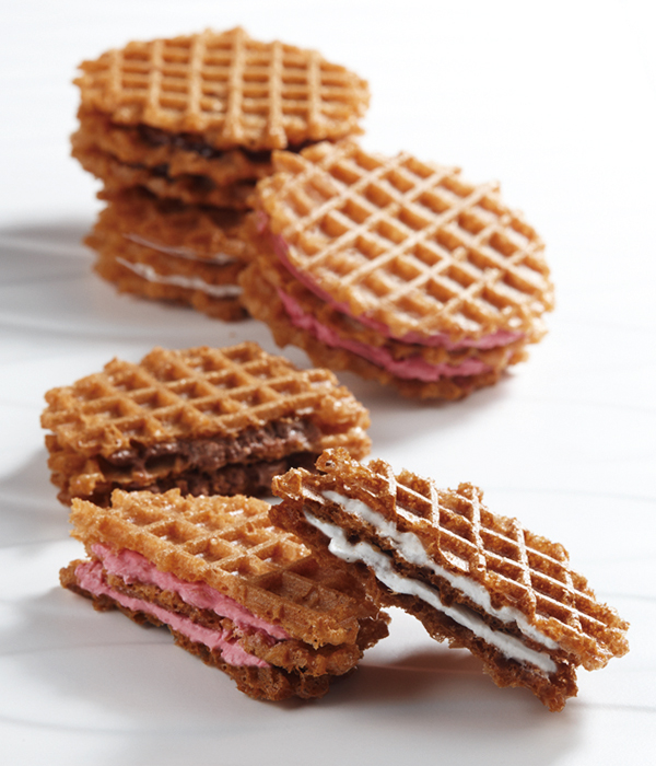今までにないまったく新しい「ミルフイュのようなワッフル」。 網目模様の香ばしい生地を3段に重ね、 口溶けのよいクリームをサンドし、さっくりザクザクとした未体験の食感に仕立てました。 バニラ、チョコレート、フランボワーズと、誰もが好きな3種類の味をご用意しております。 大切なあの人、特別な方への贈り物に最適な逸品です。